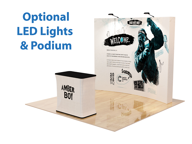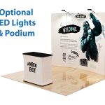 The pop-up display is so quick and easy to assemble with its pop-up mechanism. Attached fabric graphic on to the pop-up frame with Velcro, and folded along with the frame for storage or transport. When your next show comes around, simply expand the pop-up frame, and your graphic will expands with it.