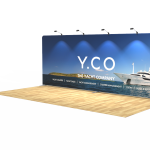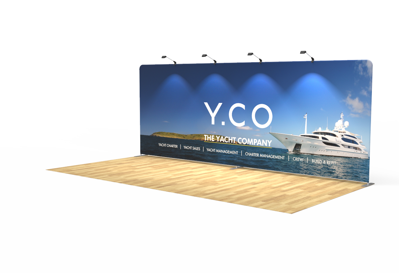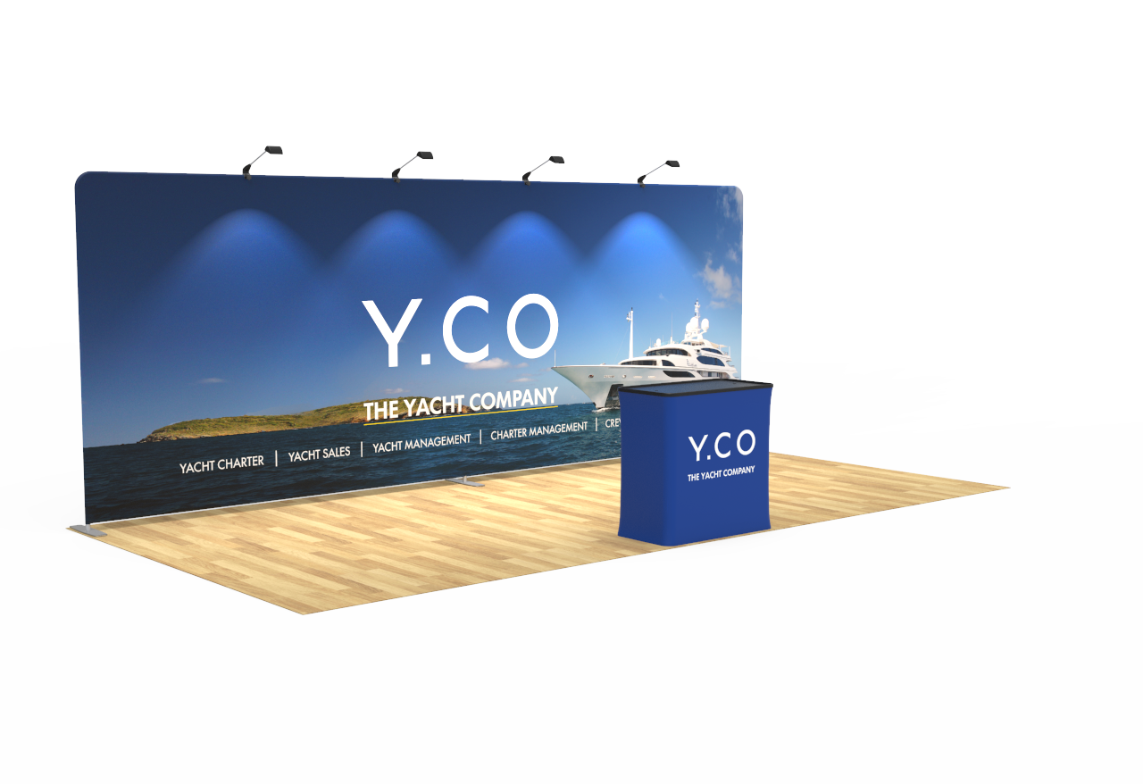 Our new 20ft Straight Tension Fabric Display is a great alternative to standard backwall displays. This Tension Display consists of durable lightweight aluminum hardware and high quality fabric, dye sublimated print. With a simple 5 step process to set up, this 20ft display can be set up and ready to go in minutes. Simply slide the tubes together to make the frame and lock in place with a push button snap. Then, with minimal effort, pull the pillowcase-like graphic over the frame and zip it shut. It’s as simple as that!