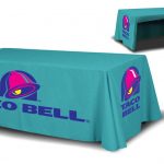 Our standard table cover is a great table topper for trade shows, exhibitions, and any presentations. Our table covers are dye sublimated and are 100% washable if it ever gets dirty. This table cover is made from our 8.8 oz. polyester table fabric that drapes over 3 sides of a 96″ x 30″ x 30″ display table. The table cover is sewn with rounded corners and hang approximately 2″ above the floor. Complete your presentation with our simple and cost-effective table cover.