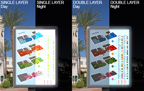 Double Layer Print – Suggested to be used at Night with proper Light Box. Please be aware, colors will appear darker in Daytime or without Light Box.