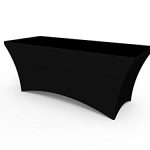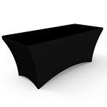 Our new Black Stretch Table Cover is a great solution for showcasing products at any event. The Table Throw conforms to folding tables for a pleasing modern profile. Printed and promotional items will really pop on this rich black surface. Available in 4ft, 6ft and 8ft sizes. Also great for product photography or when paired with one of our full color custom table runners.