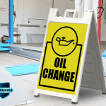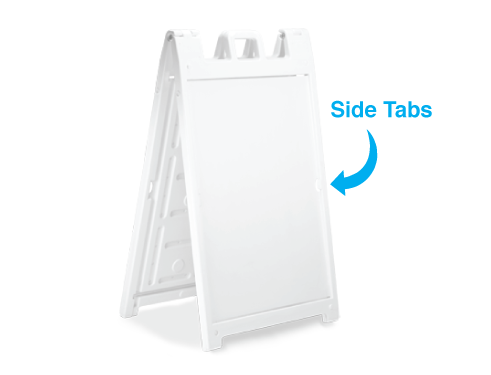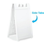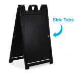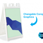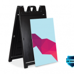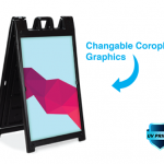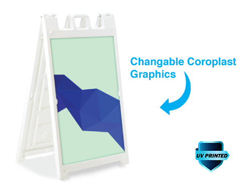 The Signicade Deluxe is the ultimate sidewalk advertising solution for those that need quick change graphics. The heavy-duty plastic sandwich board has two recessed 24×36 inch recessed graphic areas on the front and back. Coroplast mounted vinyl graphics slide easily into place for full-color signage, swap out these rigid signboard inserts as often as you need. Our graphics are full-color UV Direct Printed Coroplast for a long-lasting durable matte print.