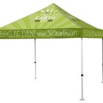 Canopy is printed and sewn Weather Resistant Tent Polyester. Print your brand message on each of the four peaks and valance panels. Our large format full color capabilities take artwork seam to seam unlike competitor tents that rely on small vinyl applications.