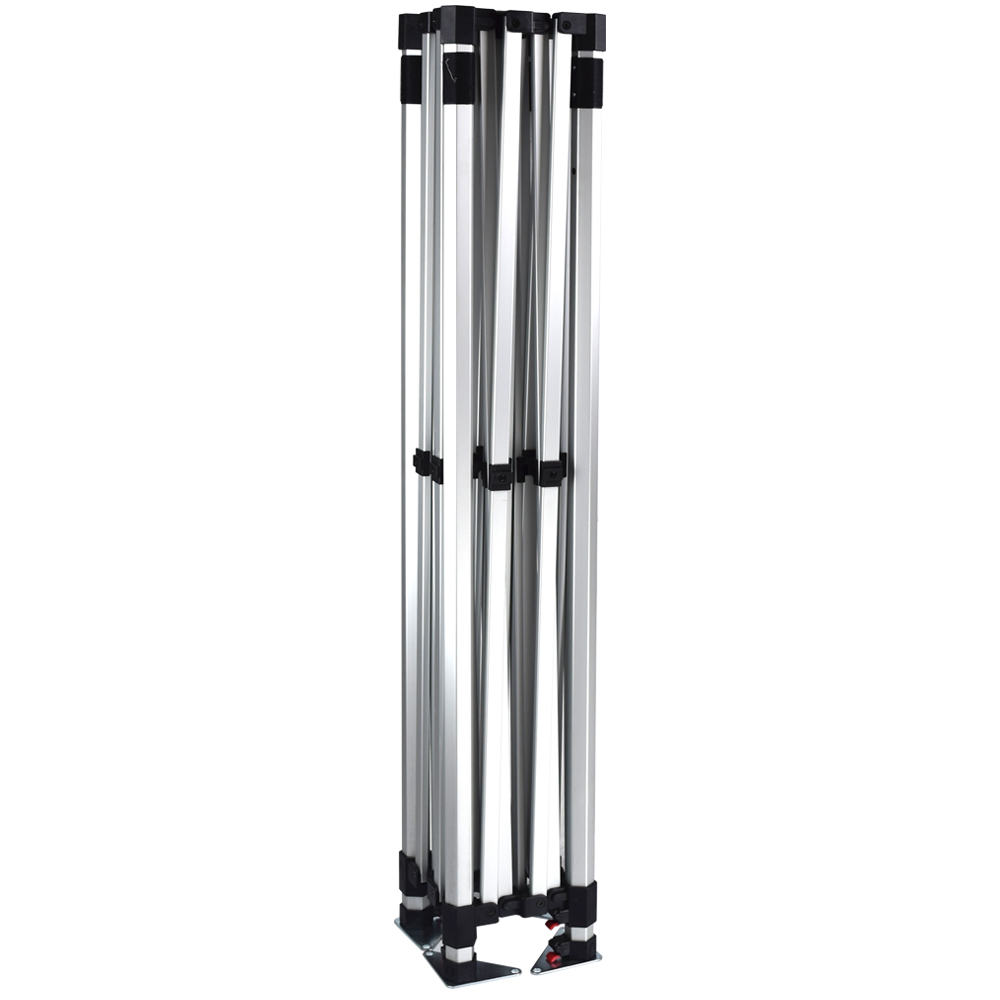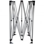 Heavy duty hex shape 40 mm. aluminum hardware gives the tent strength in outdoor installations. Telescopic legs allow you to adjust the height, and the interior lattice expands the tent interior with the crank of a handle. Each leg has a foot plate ready to be staked to the ground. (Ropes, stakes, and standard carrying bag included with hardware).