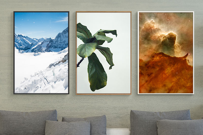 Framed Canvases add a contemporary flair to our wall art offers. Printed canvas material is mounted on a hard backing board and then inset into our framing. The frame is 1.25″ deep and the frame face is .25″, the canvas is inset .25″ all around for a clean and elegant look.