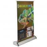 Our new Mini Retractable Banner Stand or Table Top Banner Stand is a fantastic option for those that are looking to add a Wow! factor to POP signage. It’s a miniature version of our popular Deluxe Banner Stand and displays an A3 sized graphic that can be retracted for safe keeping or travel. The hardware has a silver body construction and chrome endcaps.